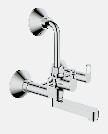 Wall Mixer with Overhead Shower Arrangement And 150mm Long Bend Pipe And Wall Flange